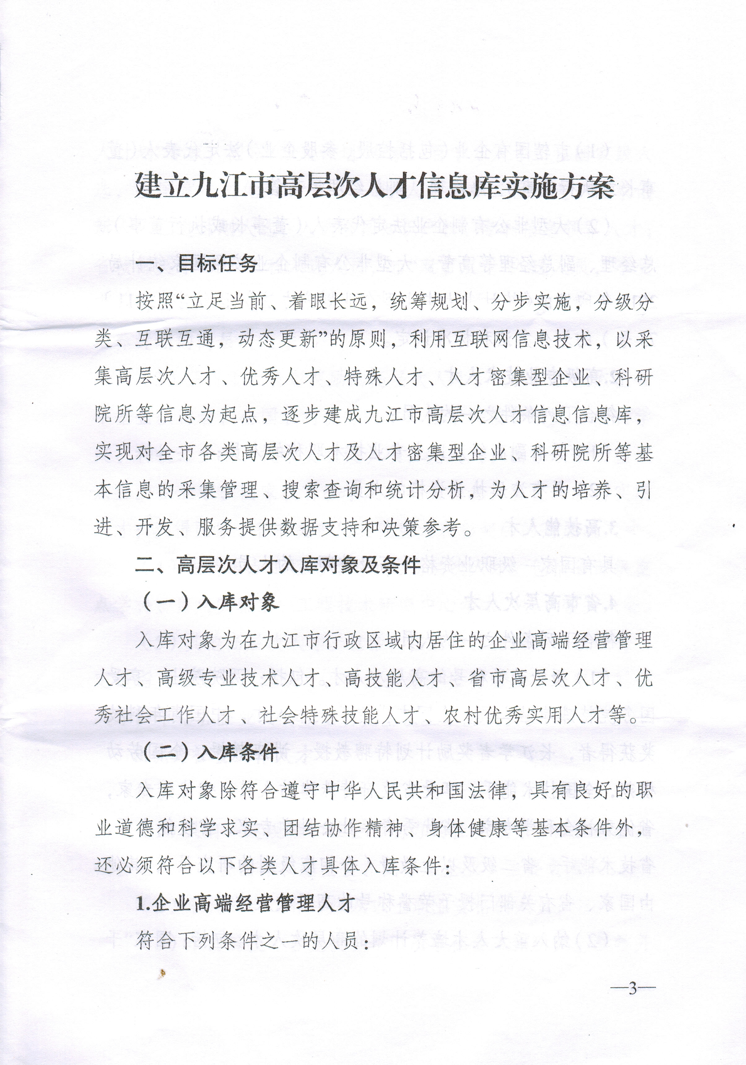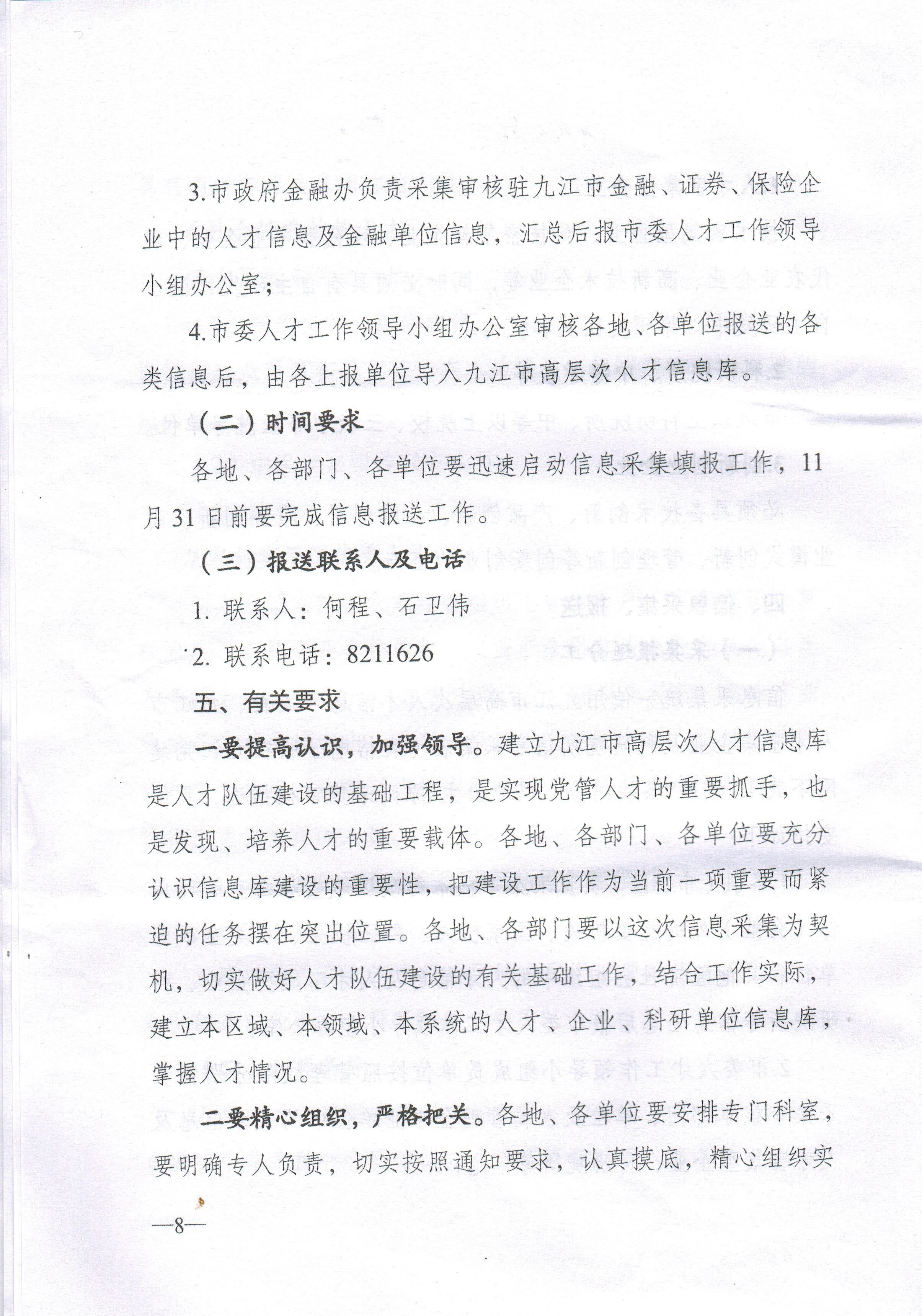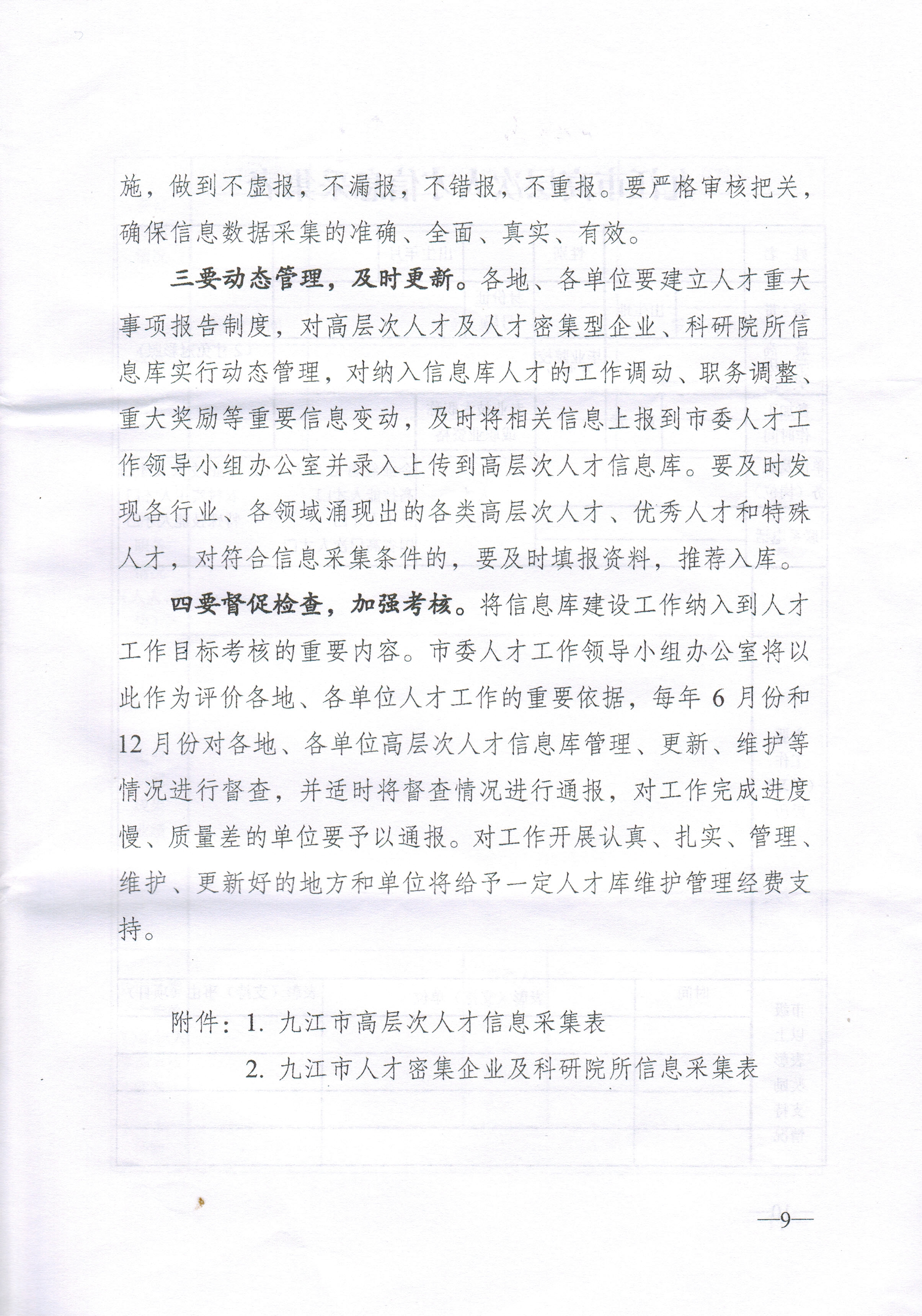 附件:中共九江市委人才工作领导小组办公室《关于建立九江市高层次人才信息库的通知》