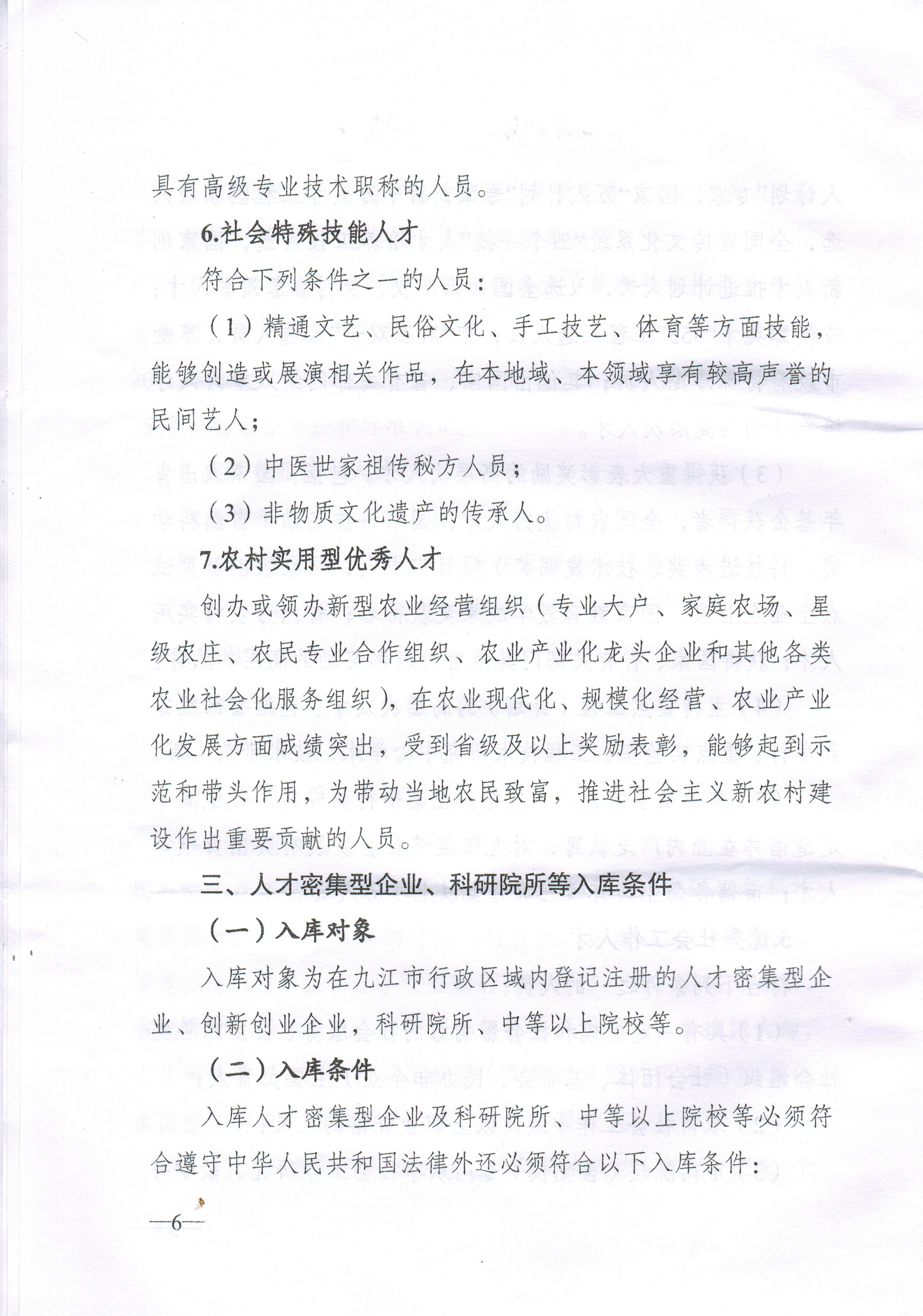 (说明:上述六类人才申报条件具体详见附件:中共九江市委人才工作领导小组办公室《关于建立九江市高层次人才信息库的通知》。)