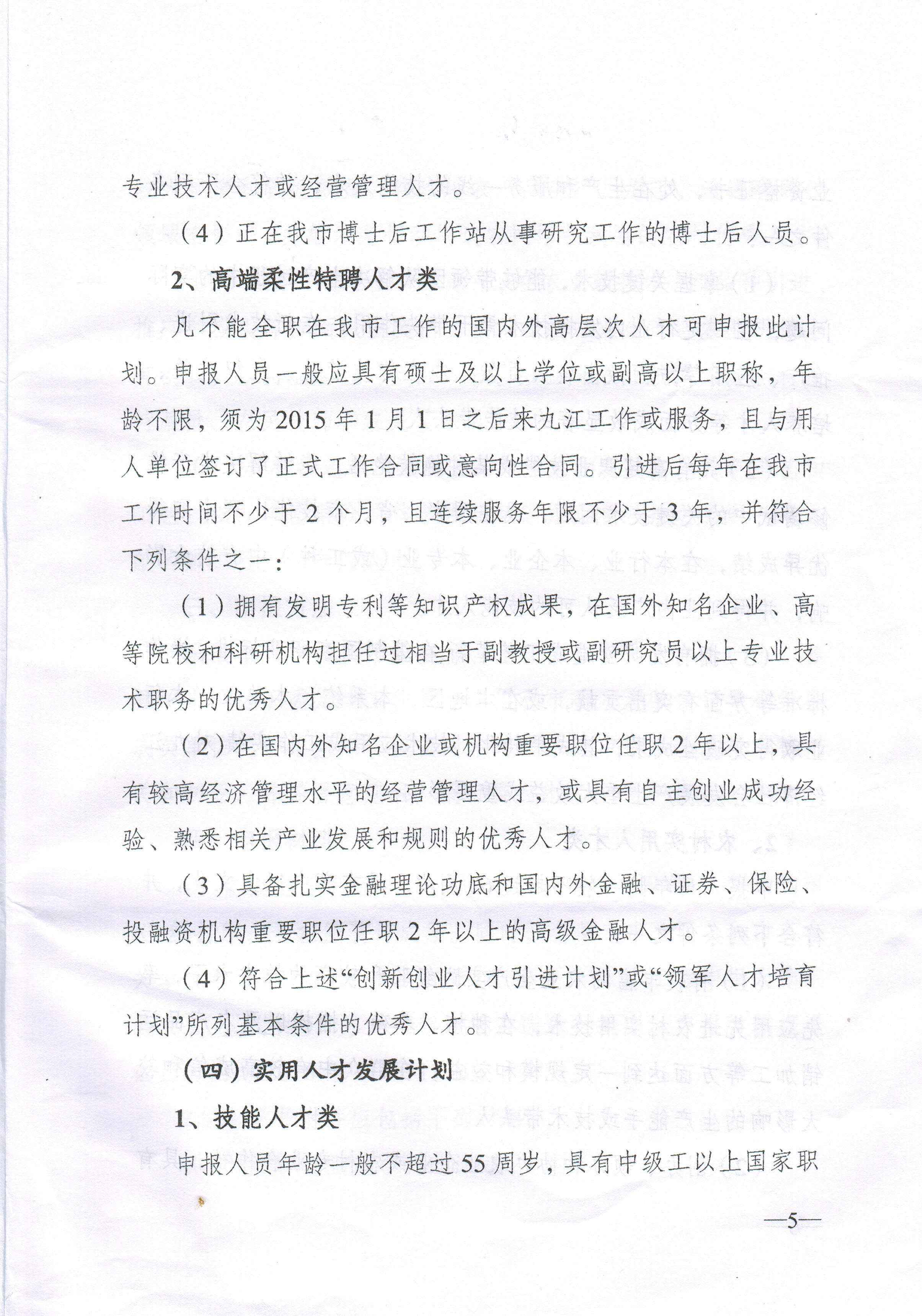 (5)实用人才发展计划技能人才类