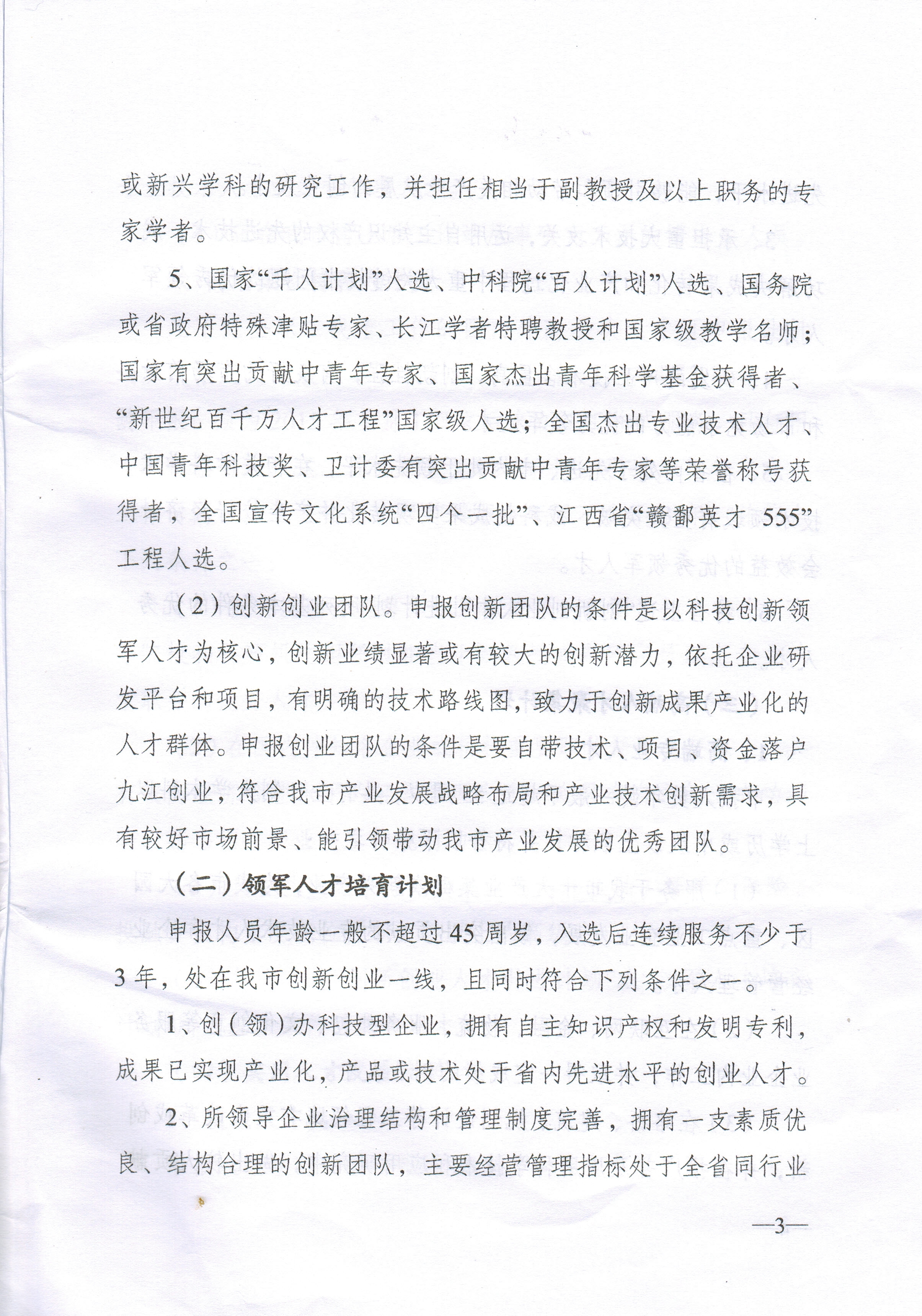 (一)创新创业人才引进计划(分创新类、创业类和创新创业团队三种)
